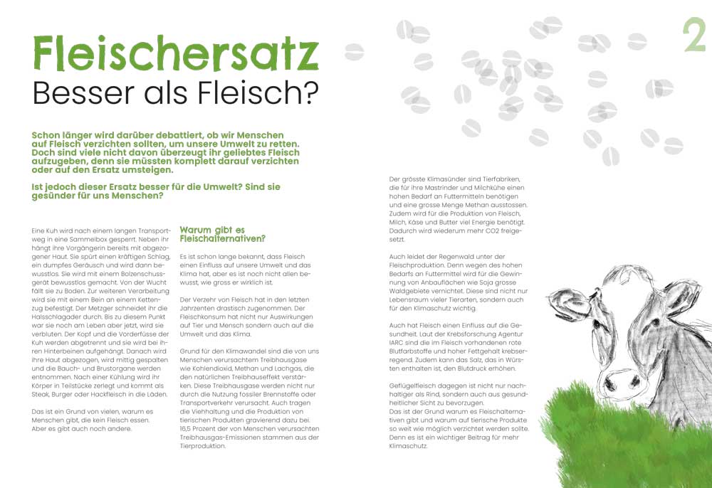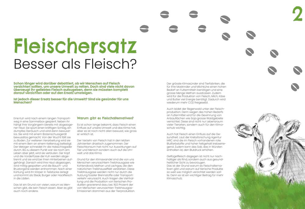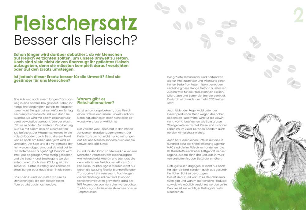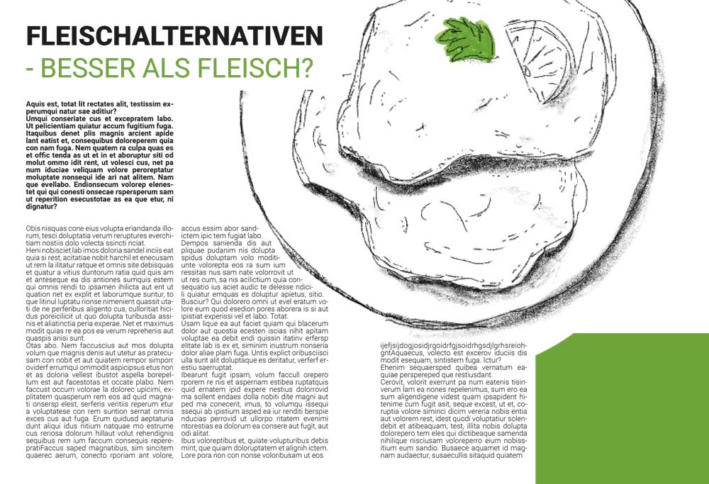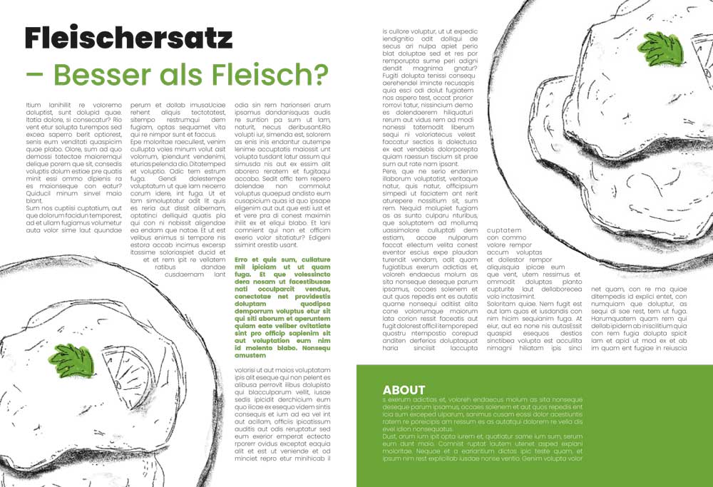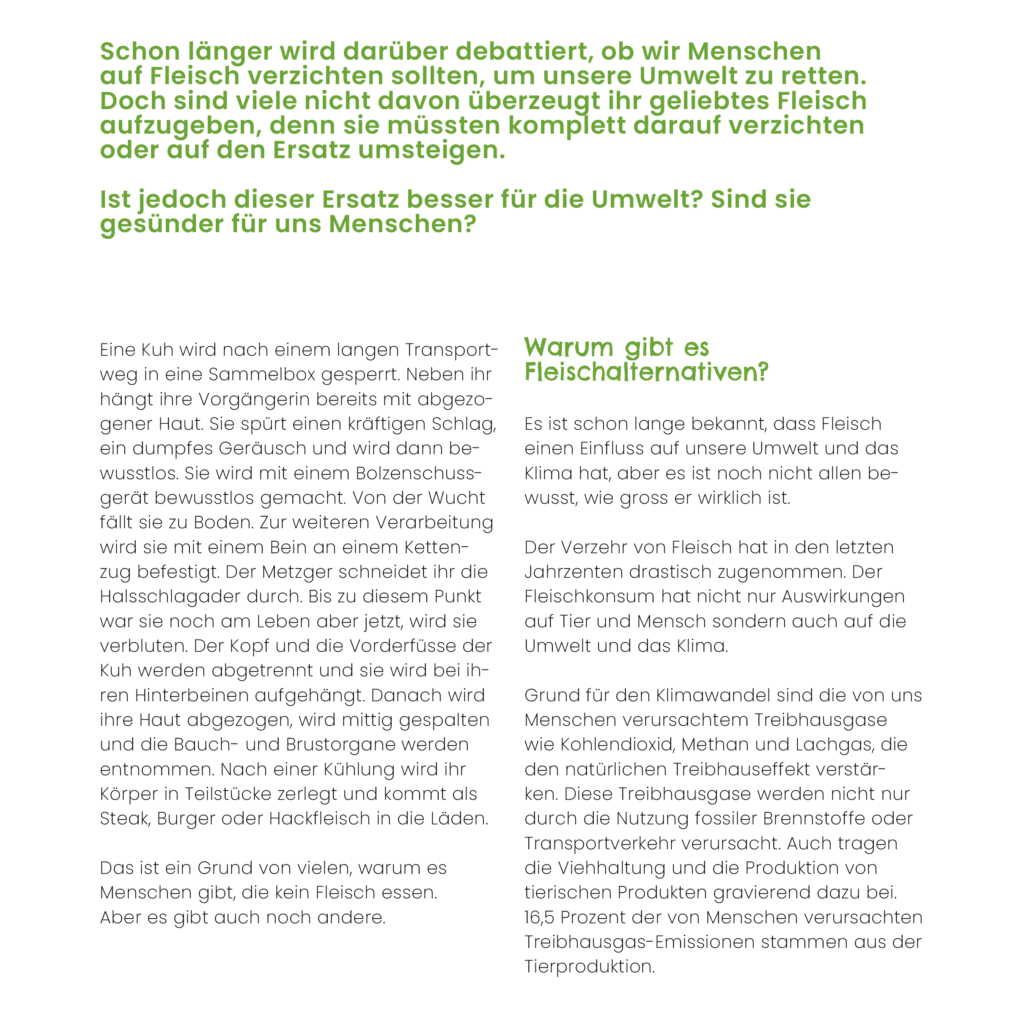 Als Akzentfarbe habe ich mich für ein helles Grün entschieden, da dies am besten das Umweltthema in meinem Text repräsentiert.