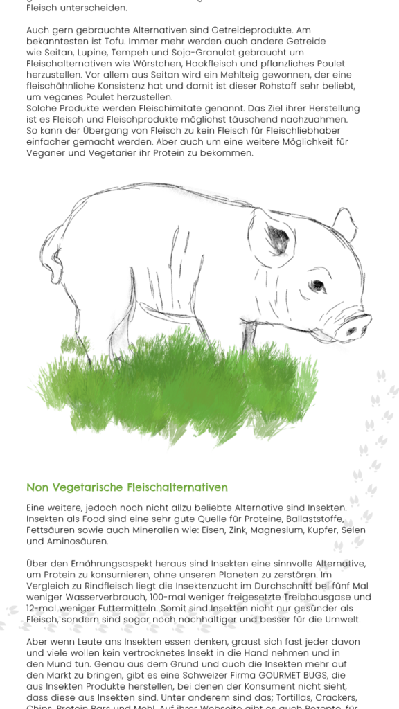 Bei meinen zweiten Ideen habe ich drauf geschaut, dass ich genügend Platz zum Atmen hatte. Das heisst, ich brauchte kleinere Bilder, grössere Spalten und mehr Abstand zwischen den einzelnen Elementen. Zudem versuchte ich eine spielerische Variante mit den Fussspuren der einzelnen Tiere. (Bild 1)